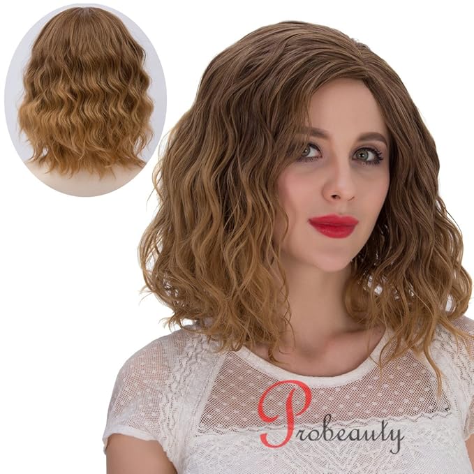 Amazon Com Probeauty Beach Wave Curly Short Wig Brown Mix Clothing